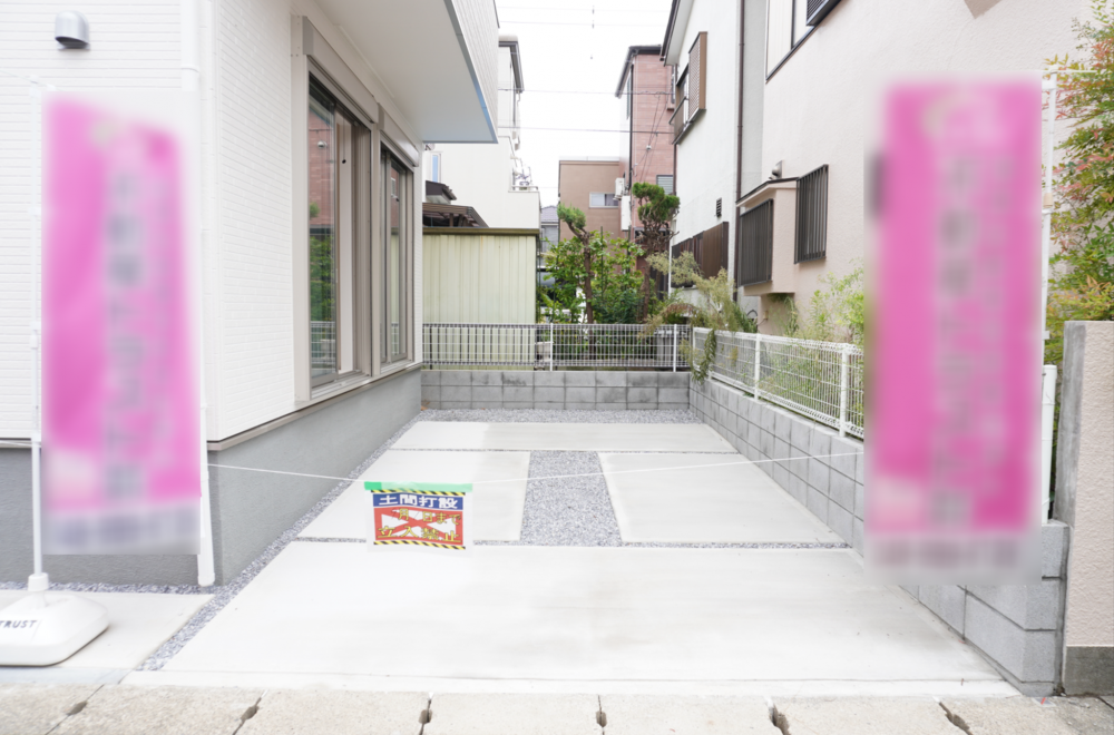 越谷市大沢、新築一戸建ての駐車場画像です
